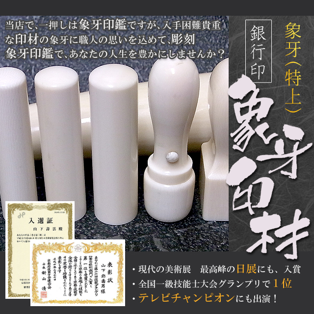 ★特上 象牙印鑑 銀行・認印13.5×60ミリケース付 ★特上 象牙銀行・認印13.5×60ミリケース付 この商品の特徴!印材の王様の象牙印材で、中心部分の木目細かい極上部分を使用しています。男性・女性両方に贈り物・プレゼントなどに大人気の印材です。高級皮ケースにお入れしてお届け致します。 ※ 納期:★10日以内に発送対応商品です★・・・・・・・・・・・・・・・・・・・・・・・・・・・・・・・・・・・・・・・・・・ ★その他個人印鑑 銀行・認印はこちらへ 印鑑ケース ★彫刻文字の表記出来ない特殊な漢字・外字 ★彫刻書体見本はこちら ※画像を↓をクリックすると大きく拡大します! 商品番号:2028 ★特上 象牙印鑑 銀行・認印13.5×60ミリケース付 1彫刻するお名前は? 彫刻書体2 選択してください てん書体 吉相体 古印体 彫刻方向1 選択してください 縦彫り 横彫り お任せ 備考欄 在庫状態:在庫有り ¥62,590(税込) 数量